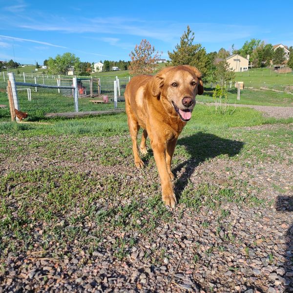 Rex was our loyal, loving, and endlessly patient red lab. Rescued at about a year old, he spent most of his life in the suburbs visiting kids as a certified therapy dog, snuggling with his people, and trotting through schools spreading comfort. Though his time at the ranch was short, he embraced the wide-open space like a pro — moseying across the pasture, chasing the occasional bunny, and making sure we never wandered too far without him. Rex was the heart of our family, and now he’s the soul of this place.